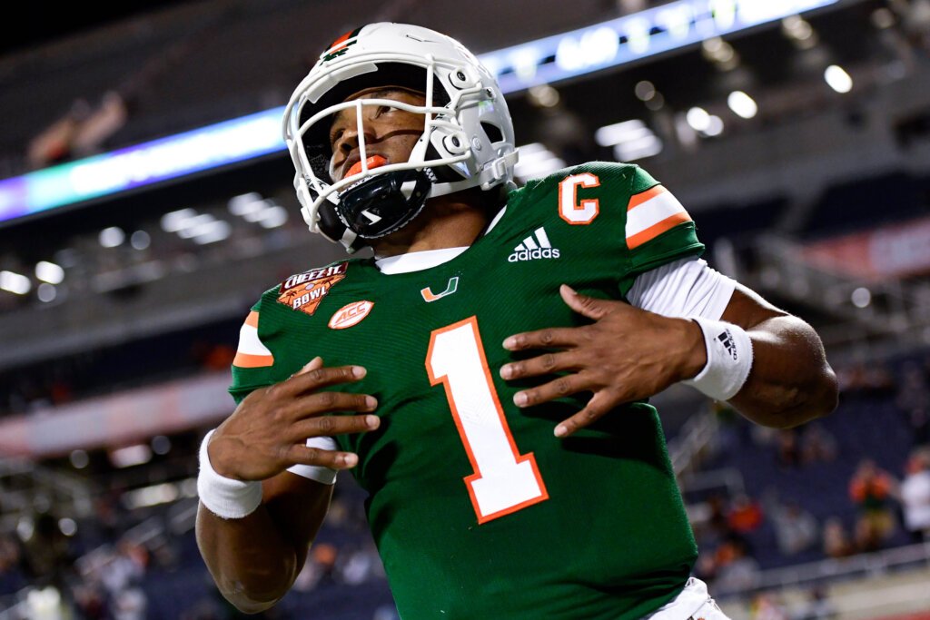 WHY HE’S NOT HIGHER: Ridder and Gabriel (UCF) are the main QBs who make up the competitive landscape for the American Conference, but when it comes to why Ridder is not higher on the list, it comes down to inconsistent play in the pocket. While Ridder is a playmaker, his level of efficiency comes and goes. At times he can find the blitz and maneuver around the pressure, and other times he gets caught off guard. He can also get one-track minded when leaving the pocket, deciding if he is going to run or throw and then doing said action whether it was a good choice or not. Ridder can struggle with flexibility when improvising compared to his peers, and the question is how will his last season improve his play.